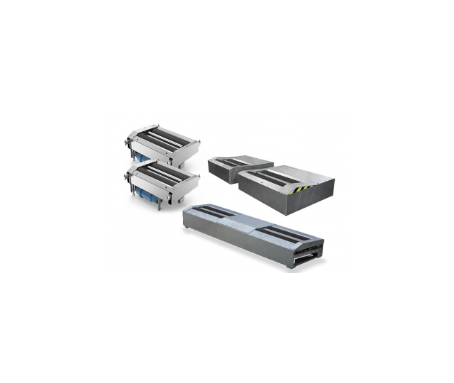 - Раздельная конструкция, мотор-редукторы 11 кВт со стороны выезда, корундовое покрытие роликов, длина 1200 мм, ролики на одном уровне