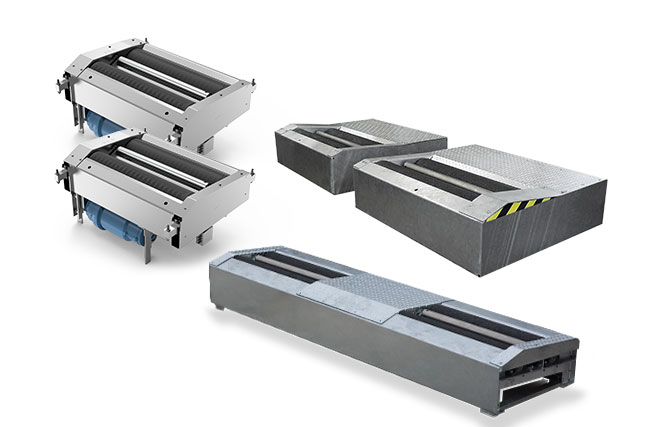 - Компактная конструкция, мотор-редукторы 11 кВт, композитное покрытие роликов, длина 985 мм