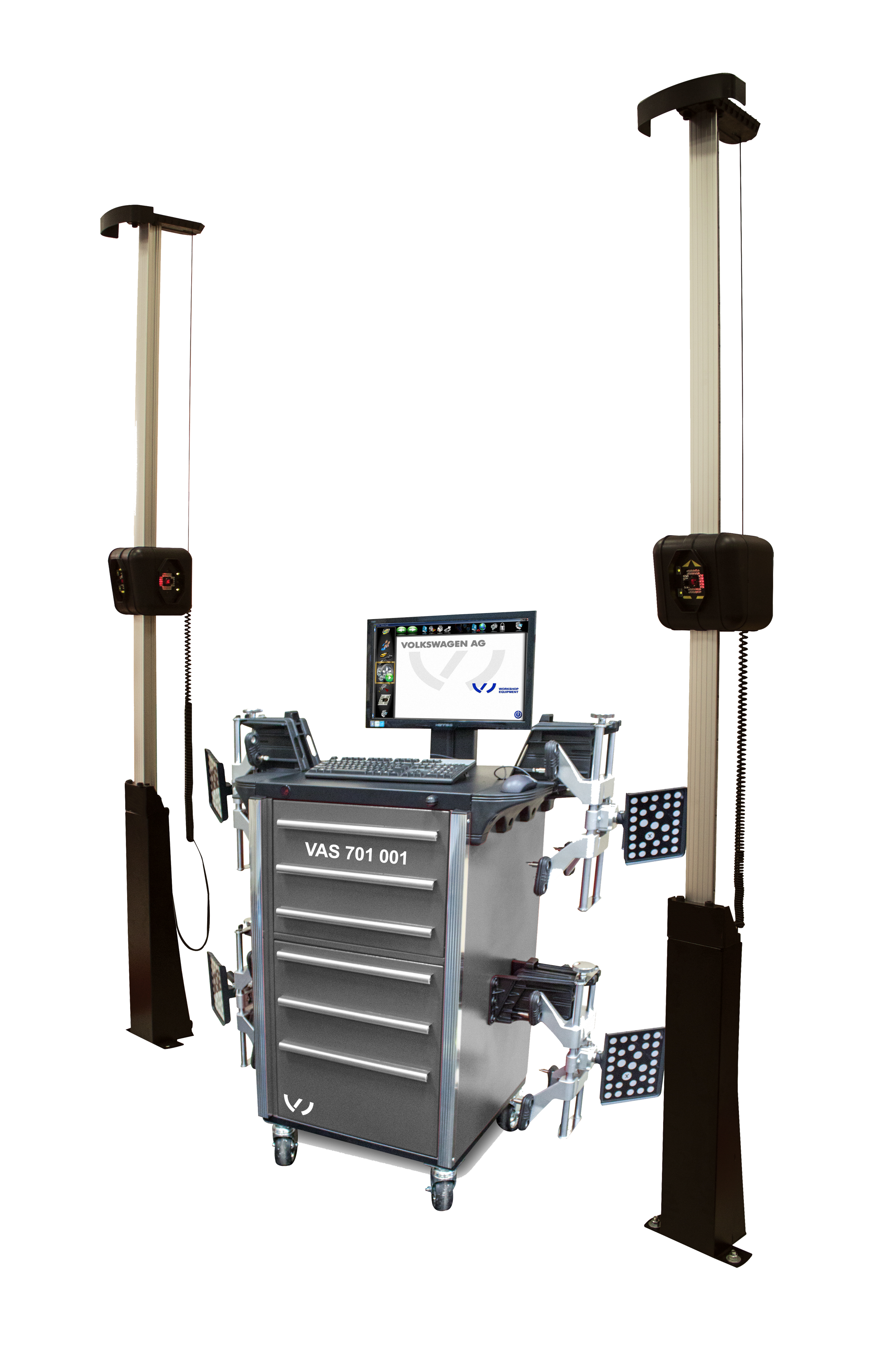 Камеры следуют за автомобилем при его подъёме и опускании и юстируют стенд при любой высоте положения автомобиля.